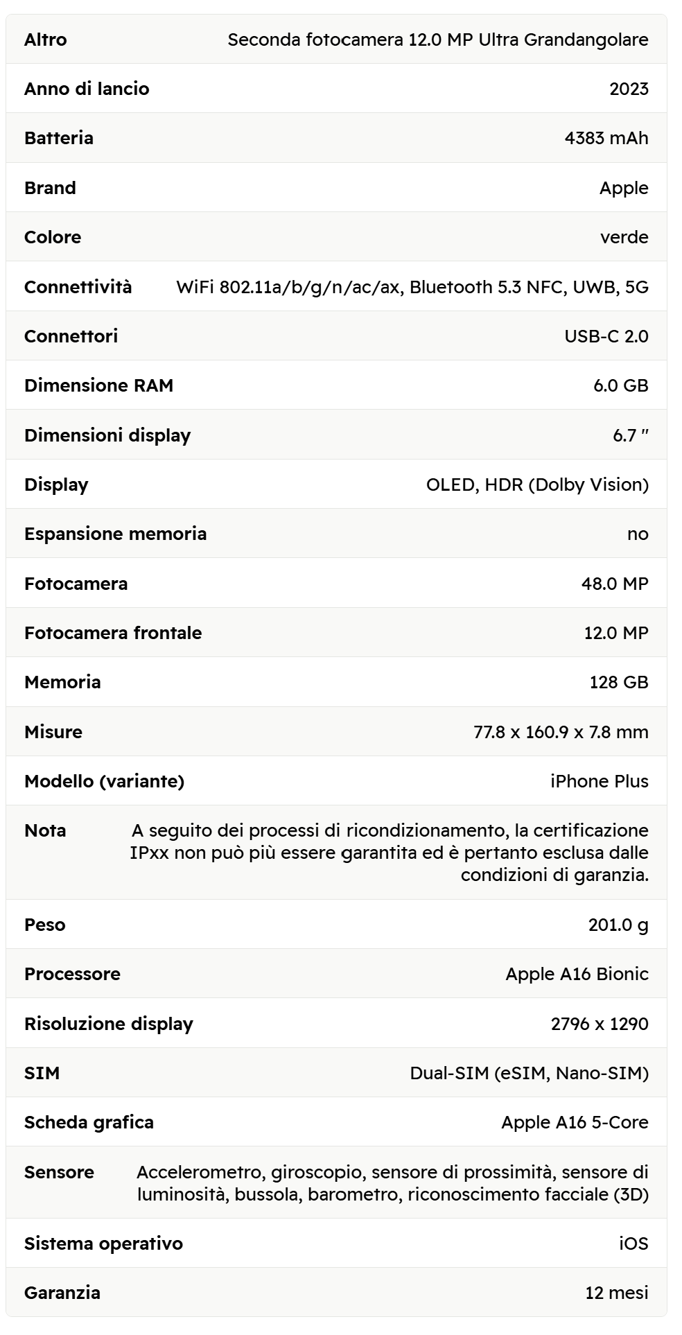 - DESIGN DI CUI INNAMORARSI: L’iPhone 15 Plus è caratterizzato da un vetro resistente e colorato e da una finitura opaca con bordi sagomati che rendono questo incredibile smartphone Apple ricondizionato un piccolo grande gioiello!